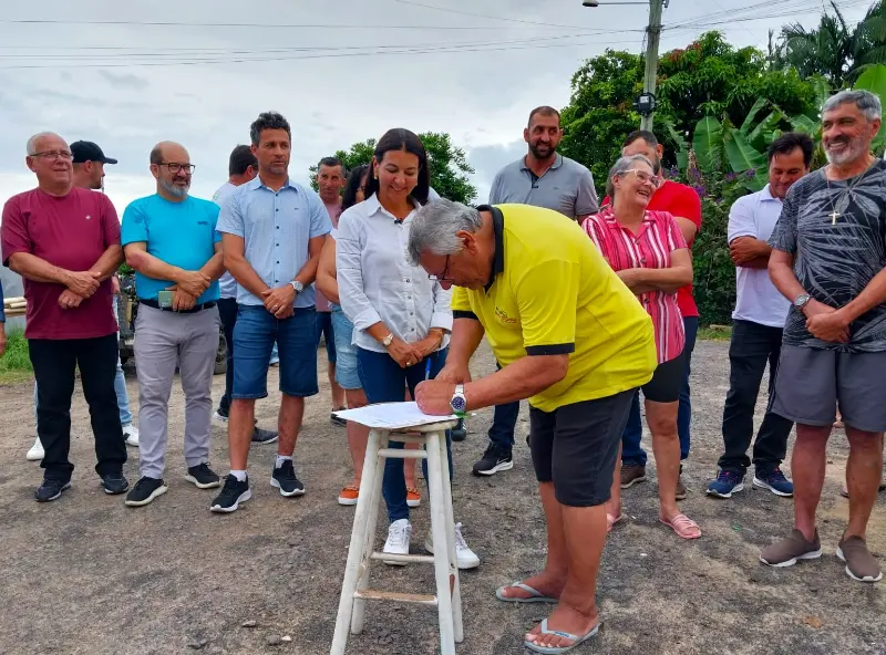 A assinatura aconteceu em uma mesa improvisada e nem a chuva que começava a cair assustou os presentes. A obra terá uma área de 1.192,70 m² e deverá ser concluída em até três meses. A Rua Pedro José Amorim é paralela à Estrada do Picadão, que também está recebendo uma grande pavimentação que, em breve, estará concluída.
