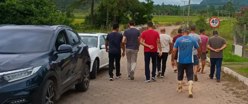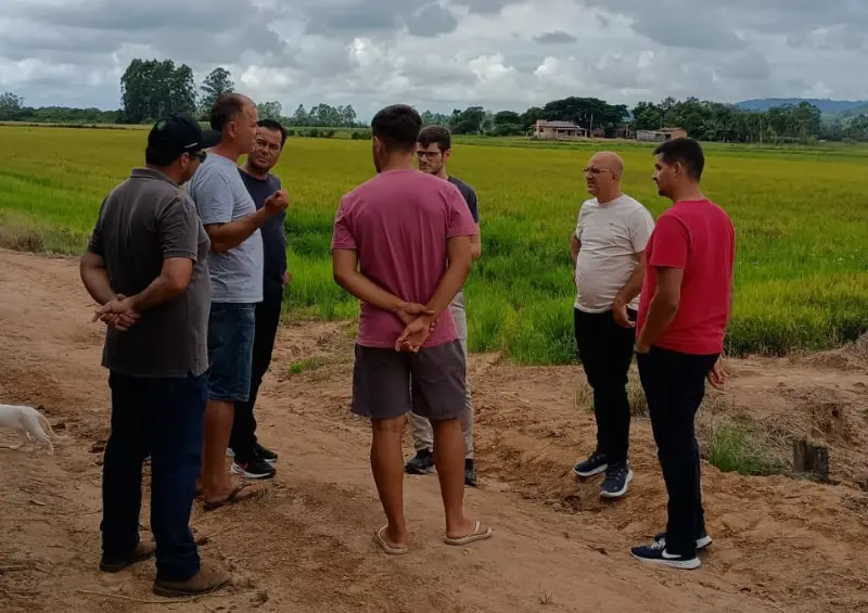 Na manhã desta terça-feira, dia 25, o secretário de obras de Sombrio, Dujinha, engenheiros da prefeitura e vereadores estiveram no bairro Garuva para discutir com a comunidade as ações necessárias para a recuperação da rodovia Pedro Simon. O local foi afetado pelas fortes chuvas que atingiram a região, comprometendo a base do calçamento e dificultando a trafegabilidade, especialmente em dias chuvosos.