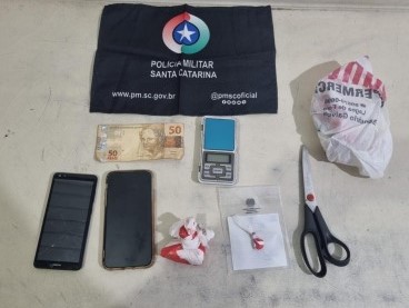 Diante da confirmação do ilícito, os policiais realizaram a abordagem na residência. Com o apoio do canil (K9), foram localizados em um dos cômodos 36,3 gramas de cocaína já fracionadas e prontas para a venda, além de uma balança de precisão. Também foram apreendidos dois aparelhos celulares e R$ 50 em dinheiro.