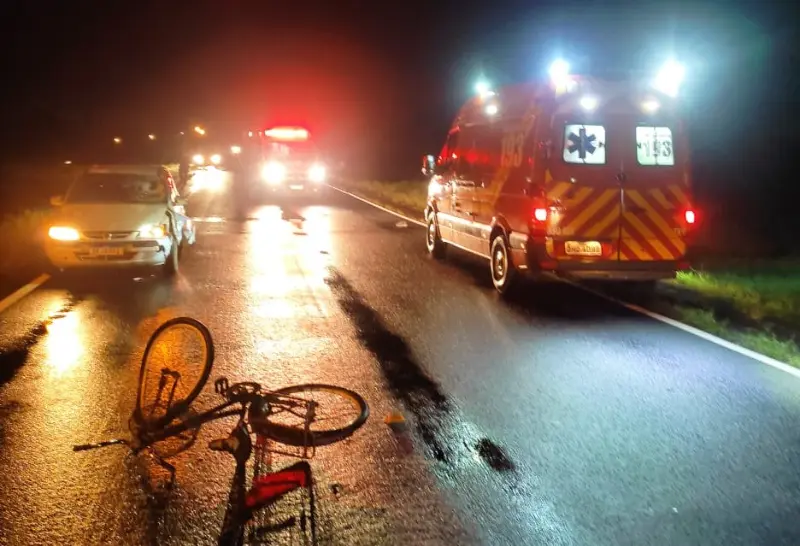 Ao chegar ao local, foi confirmada a gravidade da ocorrência. Um ciclista de 54 anos foi encontrado caído na pista. Segundo os bombeiros, a vítima estava inconsciente, com sangramento no ouvido e respiração agônica. A ambulância do município de Turvo prestou os primeiros socorros, juntamente com o condutor do veículo Celta envolvido no acidente.