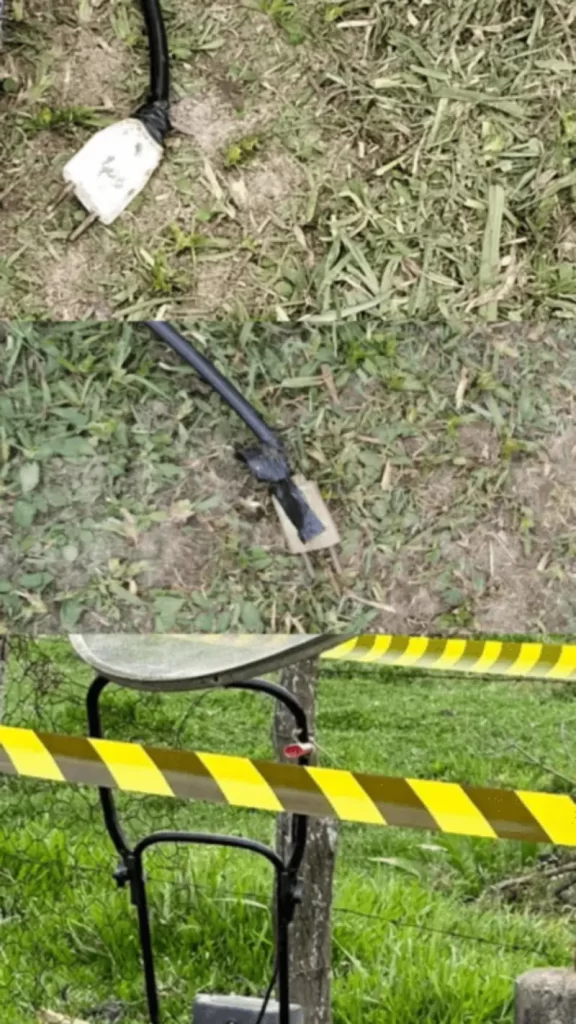 Morgana estava descalça e recebeu a descarga elétrica ao manipular a extensão – já ligada à energia e com conectores “machos”.