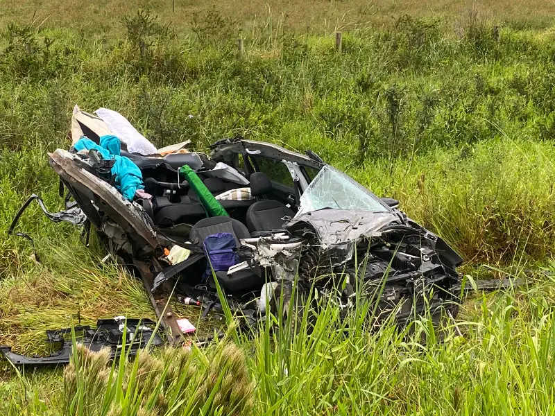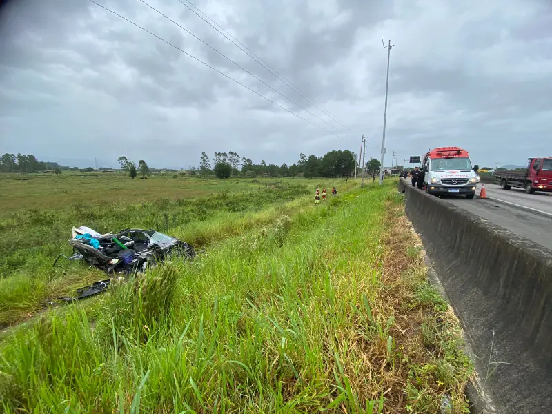 Segundo informações coletadas no local, as vítimas estavam em um Peugeot 2008, emplacado em Porto Alegre/RS que seguia no sentido norte/sul da BR 101 quando, em determinado momento, saiu da pista, colidindo na mureta de proteção e em um poste de câmera da CCR, e capotou em seguida. O carro ficou completamente destruído. Com a chegada dos órgãos de segurança, foi confirmado o óbito de uma mulher de 38 anos e de uma criança de quatro anos. O condutor, de 39 anos, sobreviveu e recebeu atendimento médico.