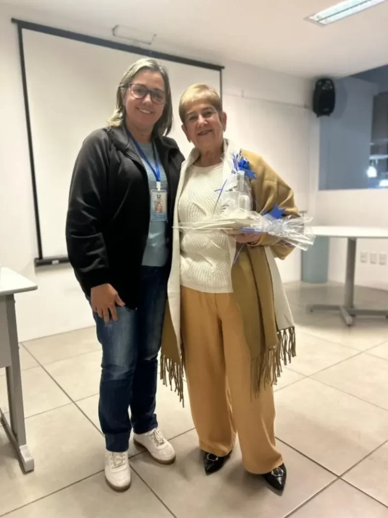Na última segunda-feira (23), a Unopar Anhanguera de Sombrio celebrou o encerramento do primeiro semestre de 2025 com uma palestra especial voltada ao fortalecimento emocional e à persistência na vida acadêmica.A convidada foi a psicóloga Madalena Martins, profissional da Secretaria de Educação de Sombrio, que conduziu um bate-papo envolvente sobre motivação, superação de desafios e foco nos objetivos. Com linguagem acessível e inspiradora, Madalena incentivou as alunas a seguirem firmes em seus propósitos, mesmo diante das dificuldades.