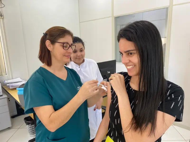 Nesta terça, 27 de junho, as técnicas de enfermagem Thauane Tais e Neiva Henrique e a agente comunitária de saúde Juliana Silva estiveram em vários pontos da área central de Santa Rosa do Sul, inclusive comércios e repartições públicas, para aplicação da vacina trivalente contra a influenza, comumente conhecida como gripe. “Como estamos nos últimos dias da campanha nacional de vacinação, optamos por essa busca ativa de pessoas que ainda não se vacinaram, principalmente dos grupos prioritários”, explicaram as vacinadoras.