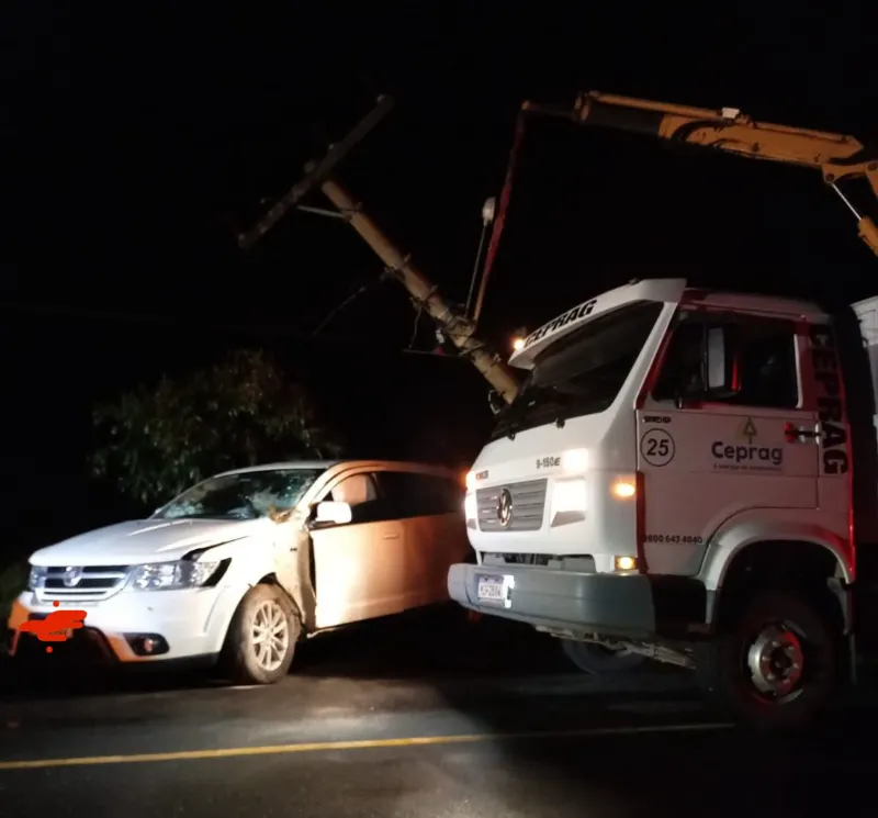 Passo de Torres, SC – A noite de sexta-feira (31) e a madrugada deste sábado (1º) foram marcadas por transtornos em diversas comunidades de Passo de Torres após um veículo colidir contra um poste de energia elétrica na comunidade de Barra Velha.