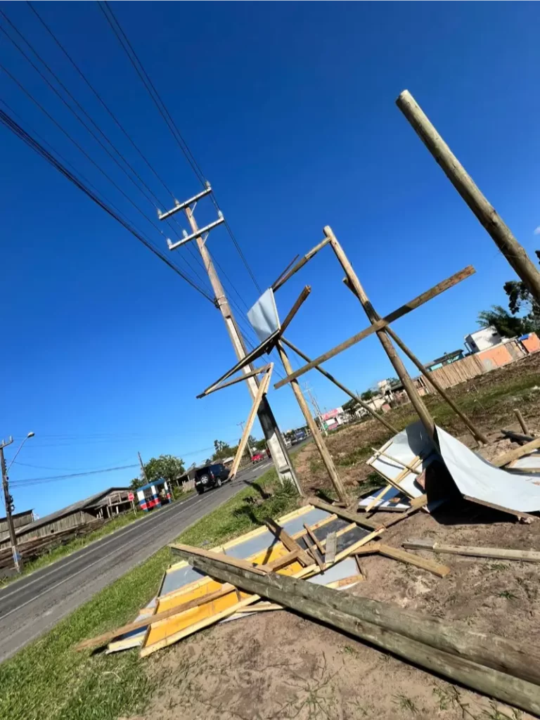 Na tarde desta quarta-feira (5), fortes ventos provocaram diversos prejuízos em Sombrio e Balneário Gaivota, com registros de destelhamentos, quedas de placas e danos em estabelecimentos comerciais.
