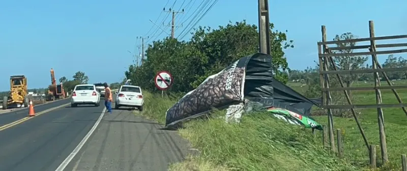 Em Balneário Gaivota, o caso que chamou atenção ocorreu na comunidade de Lagoa de Fora, onde um comércio foi atingido pelo vento. O estabelecimento, localizado às margens da rodovia José Tiskoski, teve parte do telhado arrancado e um poste caiu sobre a estrutura, aumentando o prejuízo.