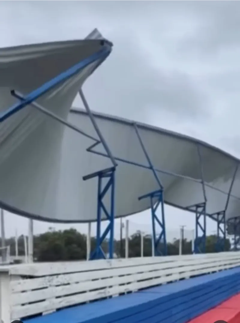 Com ventos registrados entre 60 e 70 quilômetros por hora, no início da tarde de sábado, 18 de outubro, grande parte da cobertura das arquibancadas do Estádio Municipal Domingos da Silva foram danificadas.
